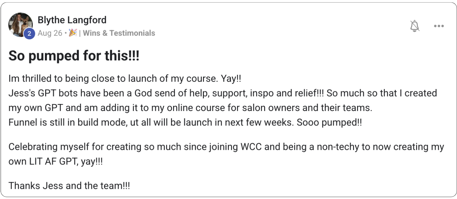 Yes! Each month, I drop new workshops, templates, and updates on the latest AI tools, strategies, and success stories so your knowledge (and your AI) stay ahead of the curve.