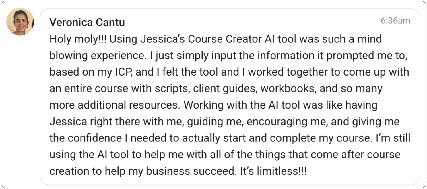No problem. You can use the AI to organize your ideas, structure your teaching frameworks, and create content — so when you are ready, you’ll already be 10 steps ahead.