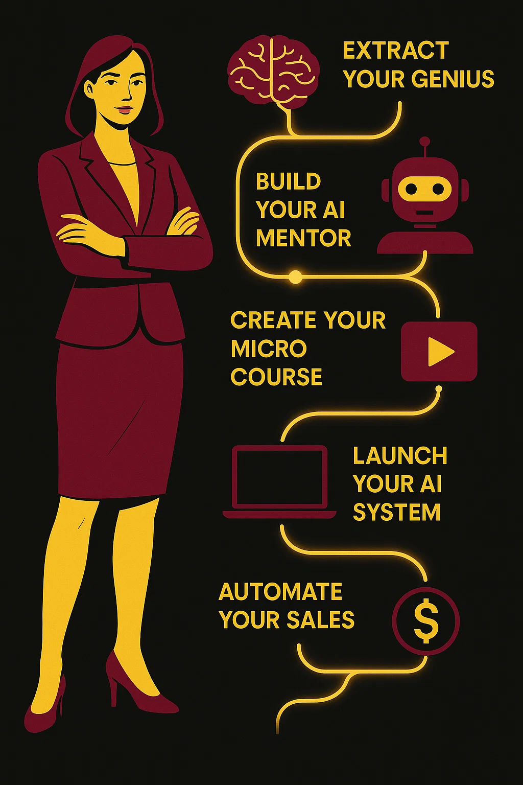 You’ll build your own AI mentor — a digital version of your brain that teaches, sells, and supports your clients or students 24/7. You’ll walk away with your full system ready to sell, plus training that shows you how to price, position, and launch it into the world.